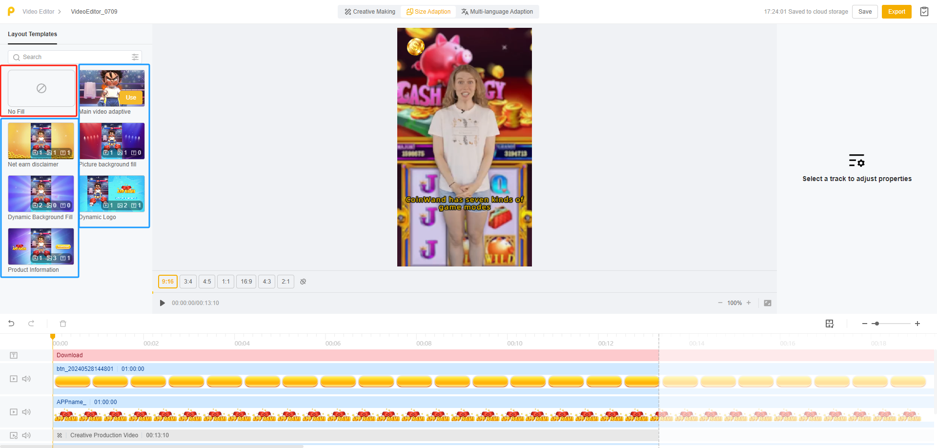 After completing the Creative Making, switch to the "Size Adaption" editing page.&#x20;
