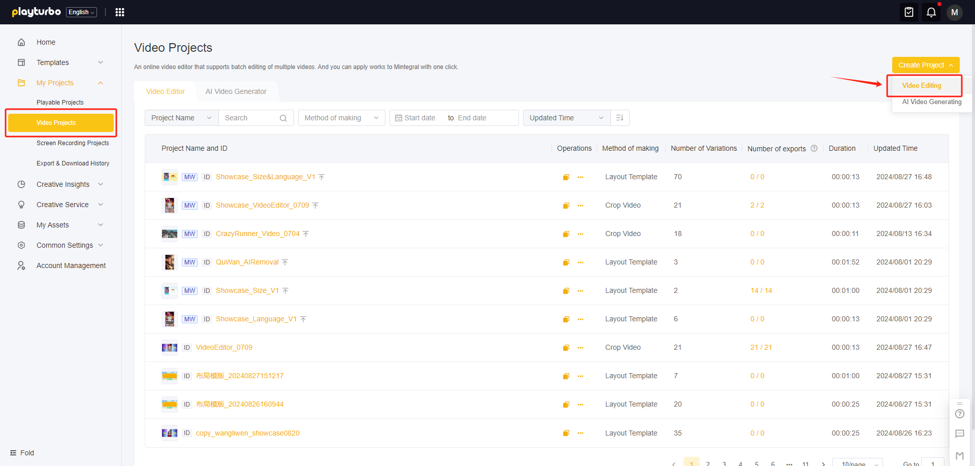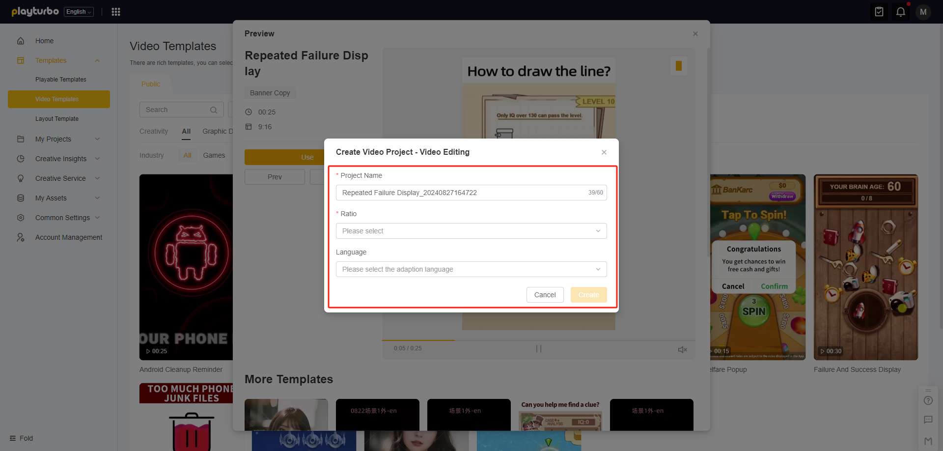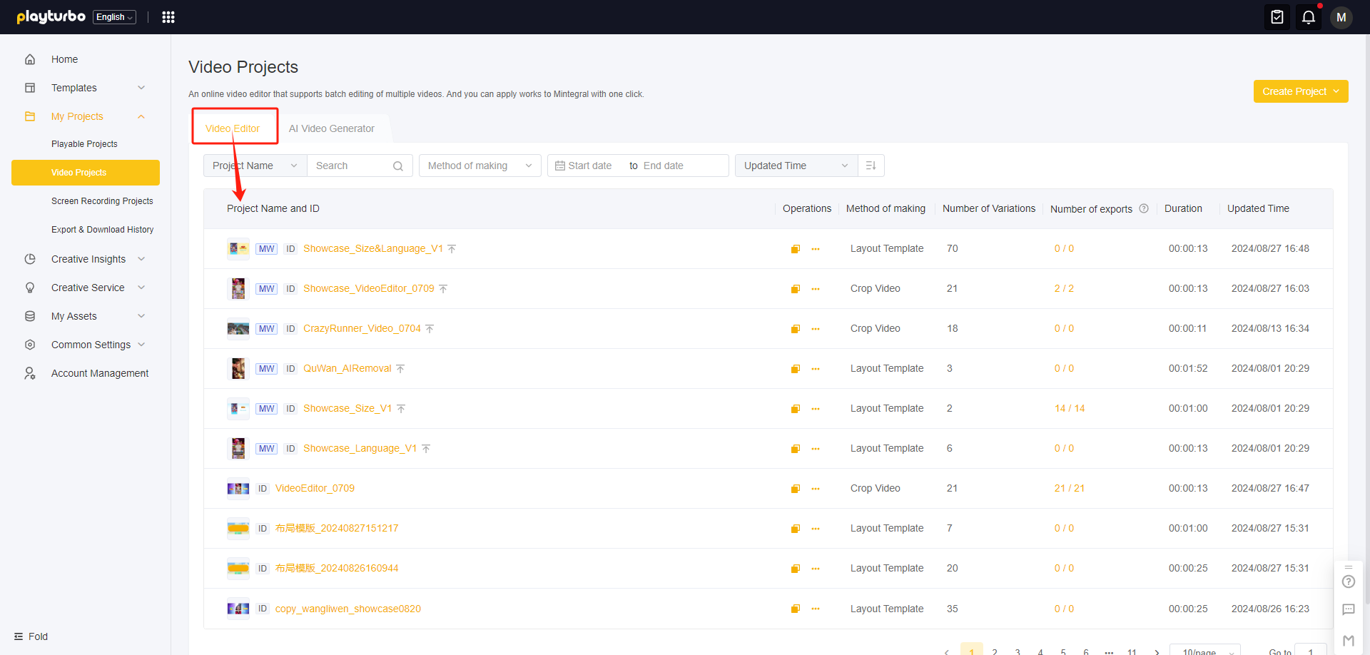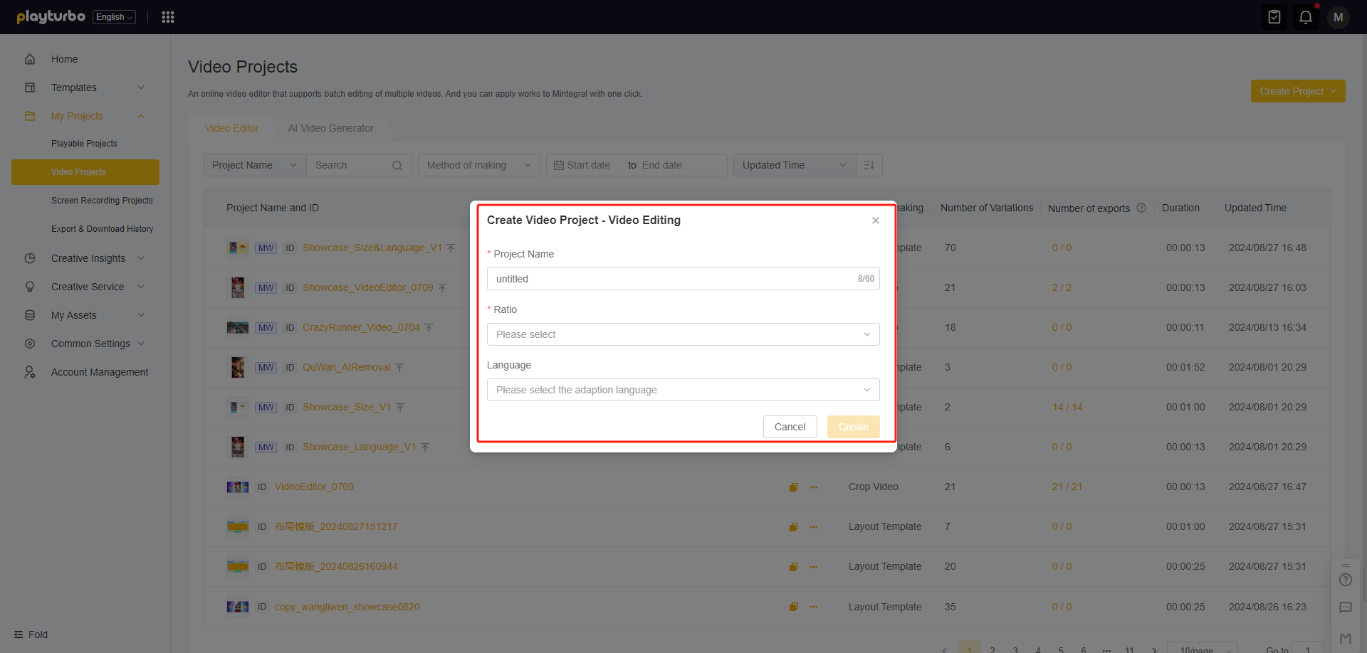 Once the creation is complete, you can enter the project and start editing 👉[video-editor-user-guide](https://doc.playturbo.com/video-tools-video-editor/video-editor-user-guide "mention")